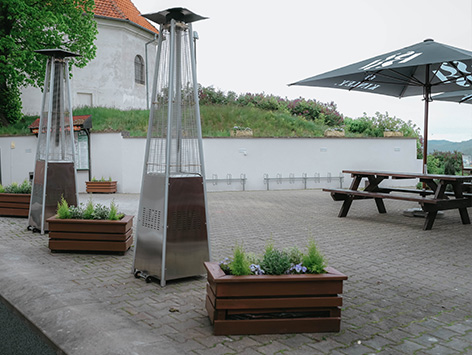Terasa má kapacitu 50 míst k sezení a díky dětskému hřišti na ni naleznou vyžití také děti.